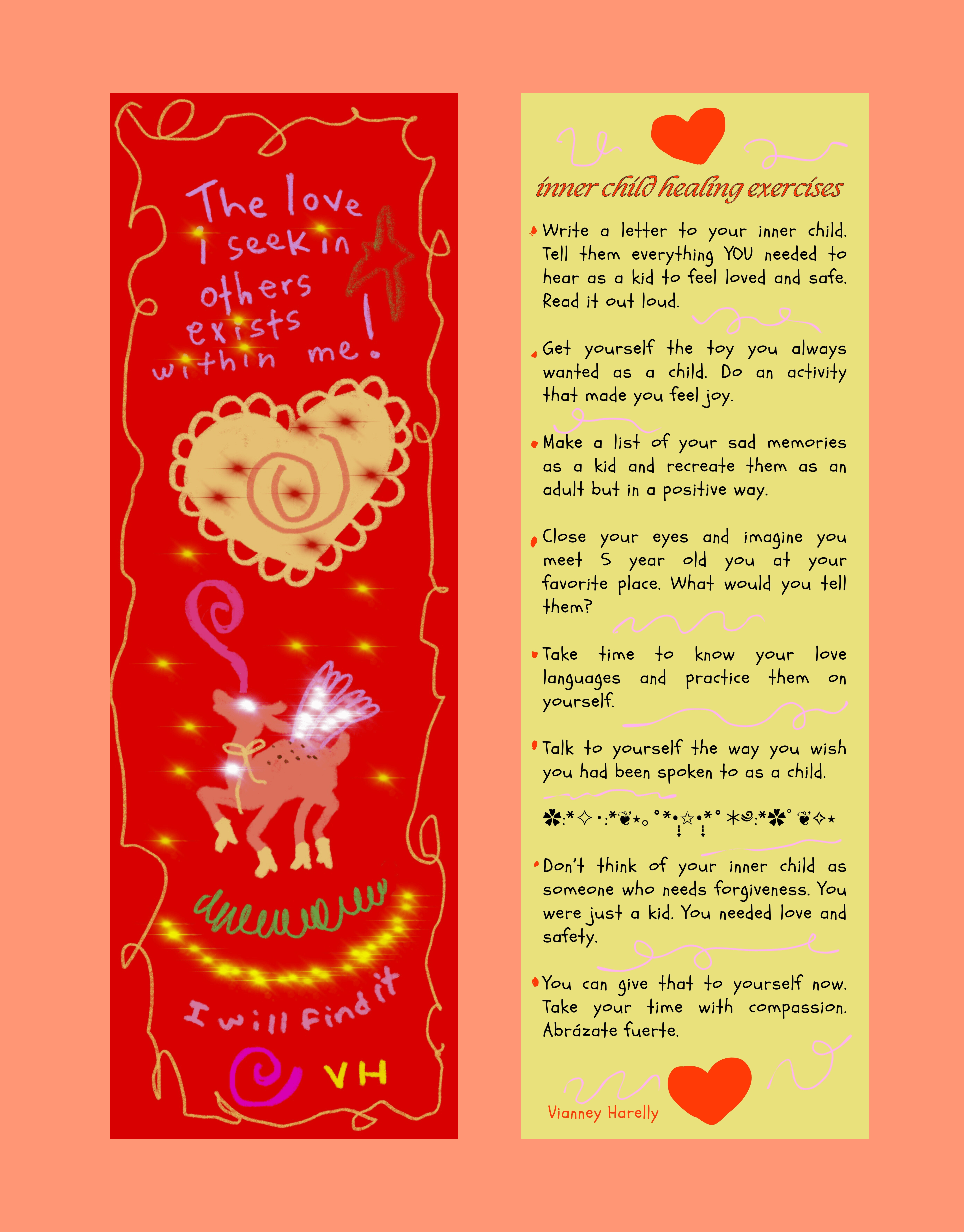 Today I am Vianney Harelly. I write poetry and stories in imperfect Spanglish. My pronouns are She/They. In my world borders and binaries are non existent.